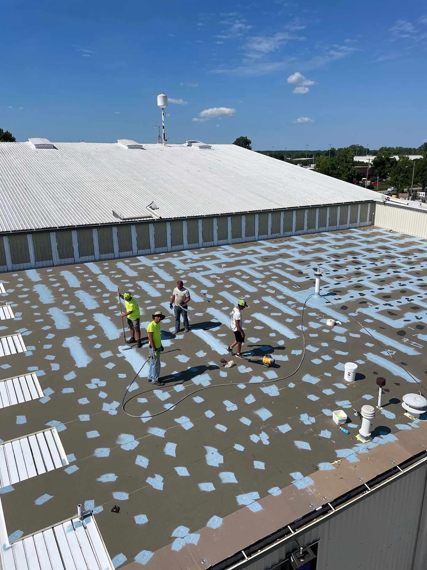 Many commercial buildings in Jefferson City use flat or low-slope roofing systems such as single-ply membranes, coated roofs, metal roofs, and spray foam systems. These roofs require specific repair techniques and careful detailing to remain watertight.